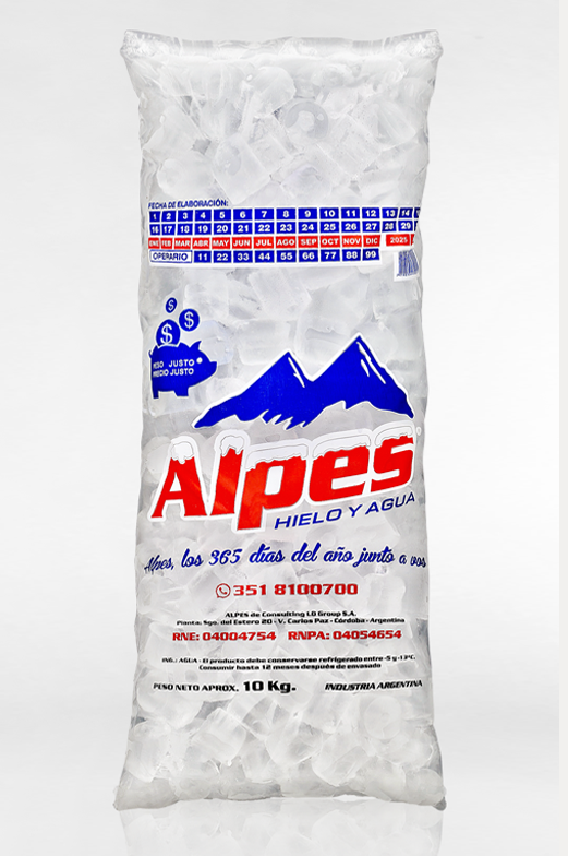 Además, en ALPES nos enorgullece ser una de las principales fábricas de hielo del centro del país. Nuestra planta, ubicada en Villa Carlos Paz sobre un predio de 5.000 m², produce diariamente hasta 25 toneladas de hielo cristalino, garantizando máxima pureza, consistencia y calidad. Contamos con una capacidad de almacenamiento de 182 toneladas, distribuida estratégicamente entre Córdoba y Villa Carlos Paz, lo que nos permite ofrecer entregas rápidas, eficientes y precisas en cualquier época del año.